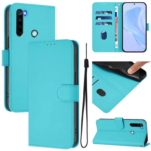 Funda de Piel con Cordón para Redmi Note 8, Color Liso, con Tacto de Piel (Azul Lago)