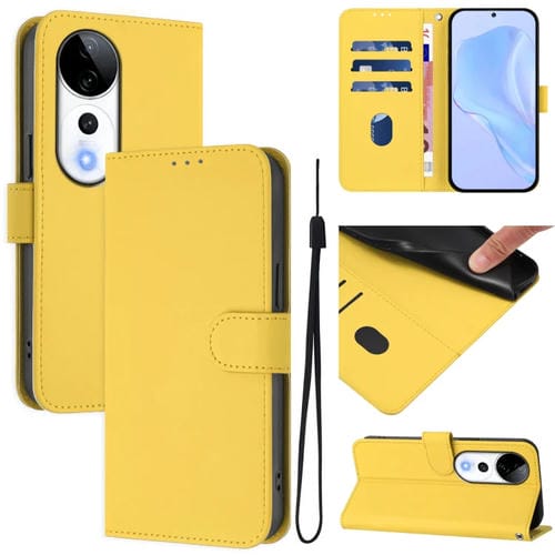 Funda de Piel con Cordón para Teléfono con Diseño de Piel Sintética de Color Liso para Vivo S19 Pro (Amarillo Limón)