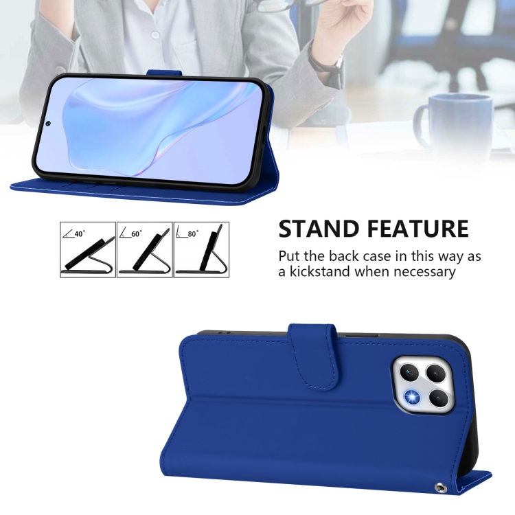 Funda de Piel con Cordón para Teléfono T-Mobile Revvl 7 5G (Azul Oscuro)