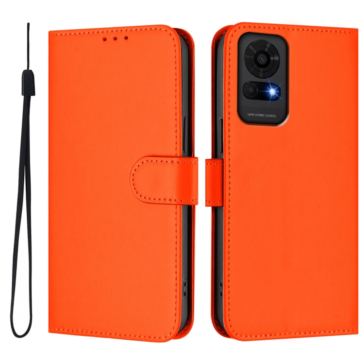 Funda de piel con cordón para teléfono TCL 50 Le con acabado liso (Naranja)