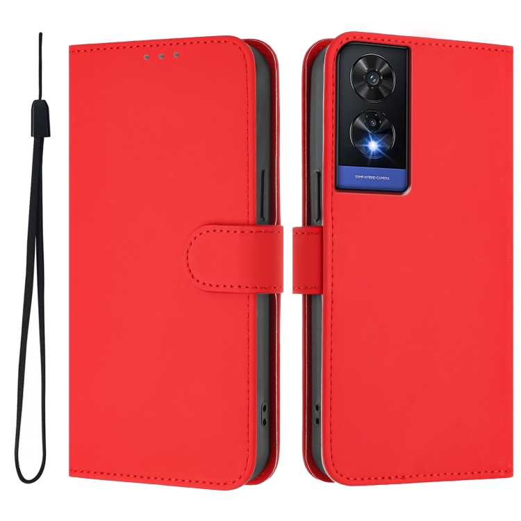 Funda de Piel con Cordón para Teléfono TCL 505 con Tacto de Piel (Rojo)