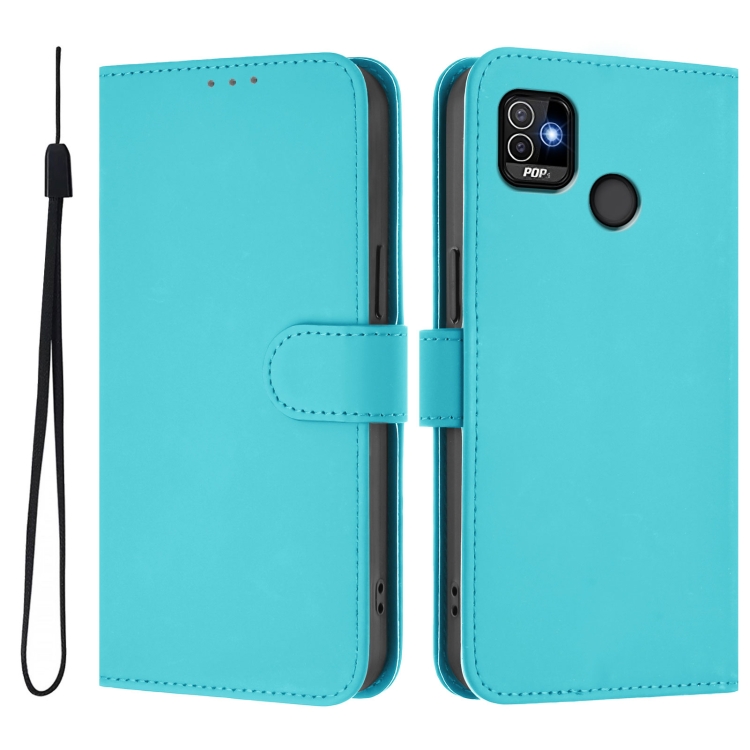 Funda de Piel con Cordón para Tecno Pop 5 (Azul Lago)