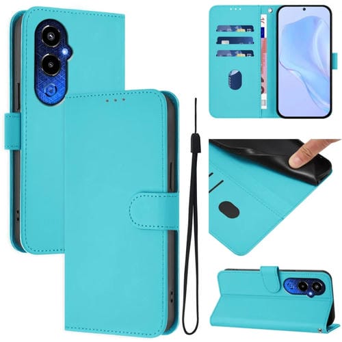 Funda de Piel con Cordón para Tecno Pova 4 Pro (Azul Lago)