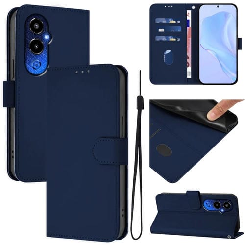 Funda de Piel con Textura y Cordón para Tecno Pova 4 Pro (Azul Marino)