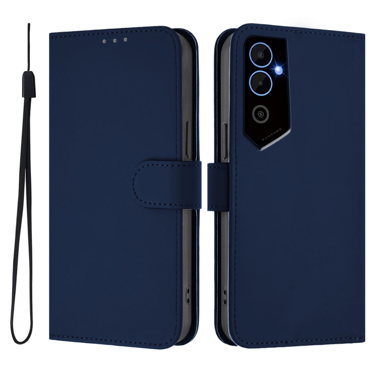 Funda de Piel para Tecno Pova Neo 2 con Textura y Cordón (Azul Marino)