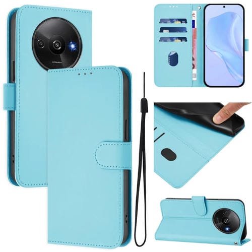 Funda de Piel con Cordón para Teléfono Xiaomi Poco C61 4G con Diseño Global de Piel Sintética de Color Liso (Azul Cielo)