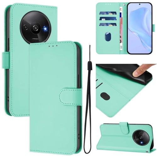 Funda de Piel con Cordón para Teléfono Xiaomi Poco C61 4G con Tacto de Piel de Color Liso (Verde Menta)