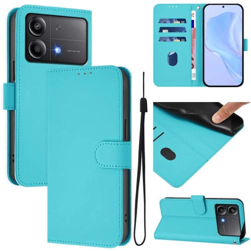 Funda de Piel con Cordón para Teléfono Xiaomi Poco X6 Neo 5G con Tacto de Piel de Color Liso (Azul Lago)