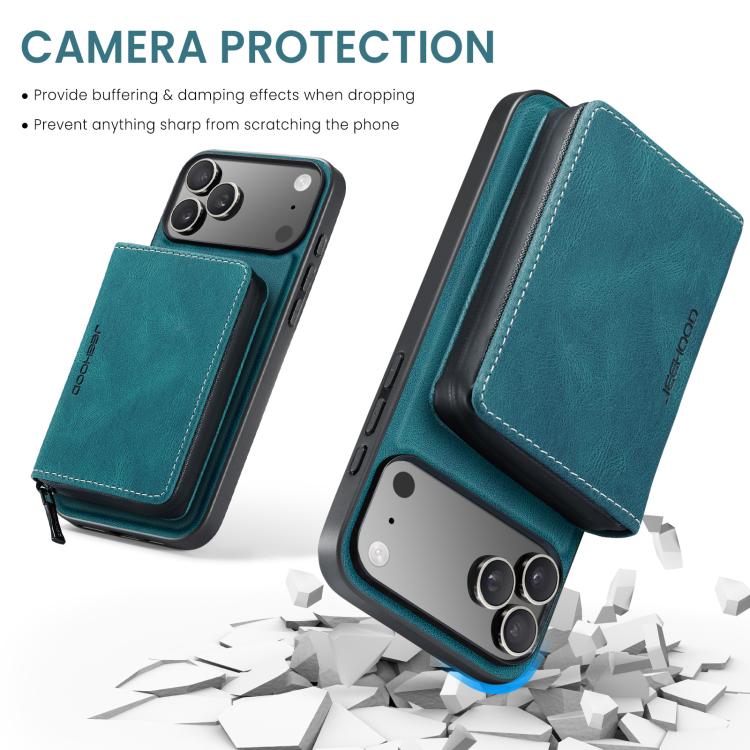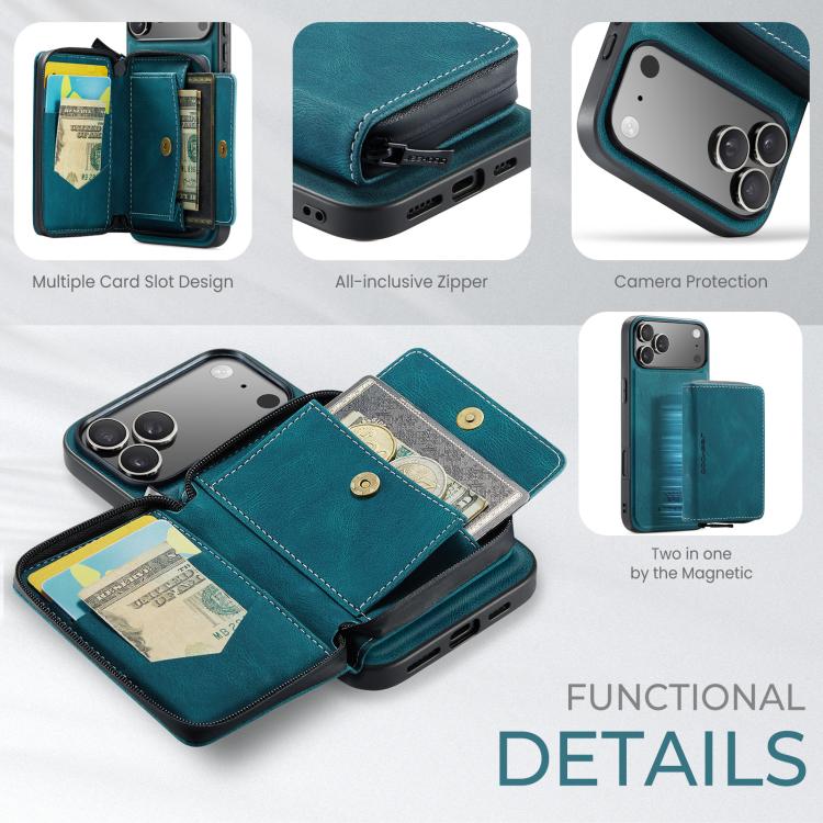 Funda de piel con cremallera magnética horizontal tipo libro JEEHOOD J02 para iPhone 17 Pro (Azul)