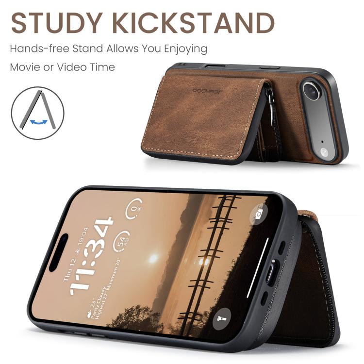 Funda de piel con cremallera magnética JEEHOOD J02 para iPhone Air, tipo libro horizontal (marrón)