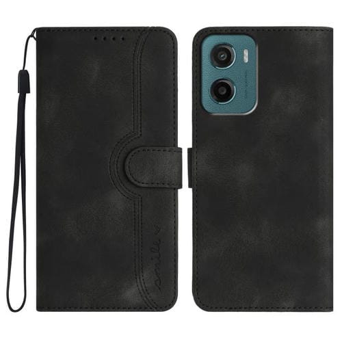 Funda de Piel para Motorola Moto G05 con Diseño de Corazón (Negra)
