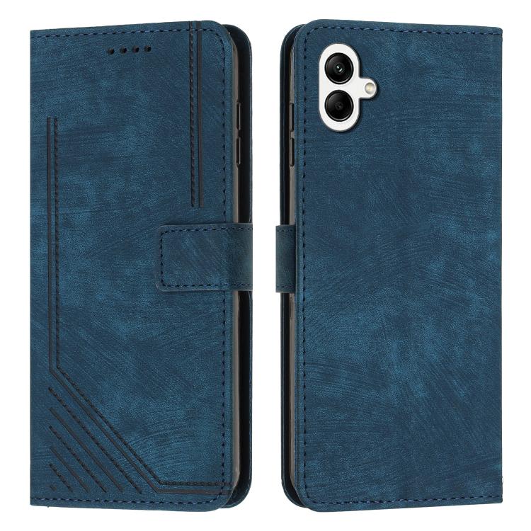 Funda de piel con estampado de rayas y cordón para Samsung Galaxy A07 4G (azul)