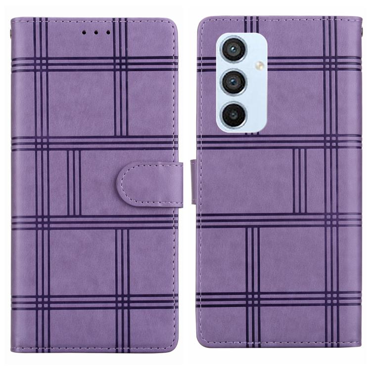 Funda de piel con relieve a cuadros para Samsung Galaxy A54 5G (morada)