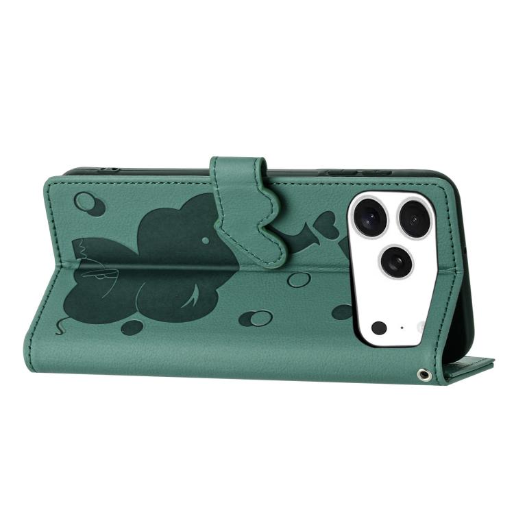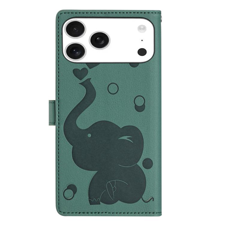 Funda de piel con relieve de elefante para iPhone 17 Pro (verde)