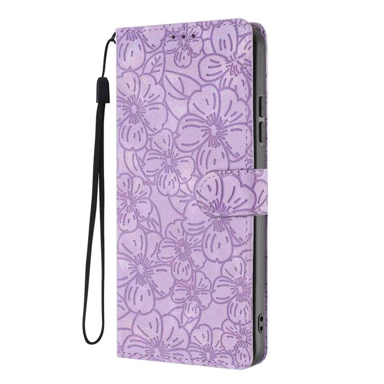 Funda de piel con relieve de flores de cerezo para iPhone 17 Pro (morada)