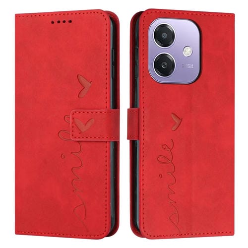 Funda de Piel con Relieve En Forma de Corazón para Oppo A3X 5G (Roja)
