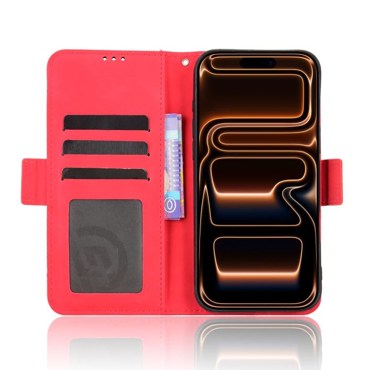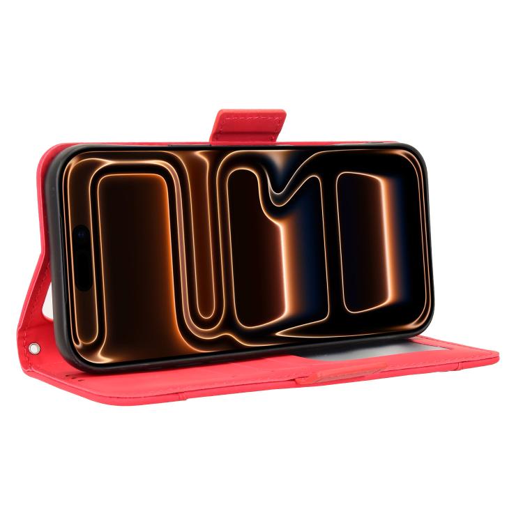 Funda de piel con textura de becerro para iPhone 17 Pro, con ranuras para tarjetas (roja)