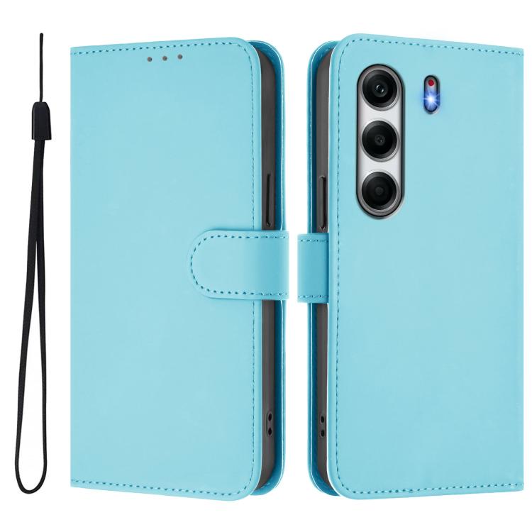 Funda de Piel para Tecno Camon 40 4G con Textura Lisa y Cordón (Azul Cielo)