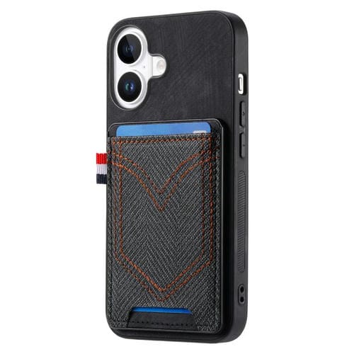 Funda de piel con textura vaquera para iPhone 17 con ranura para tarjetas (negra)