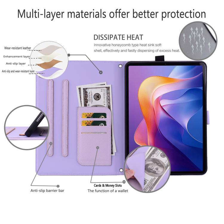 Funda de piel de lichi con tacto de gato para Samsung Galaxy Tab A9 (morado)