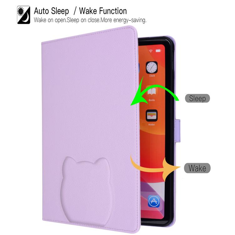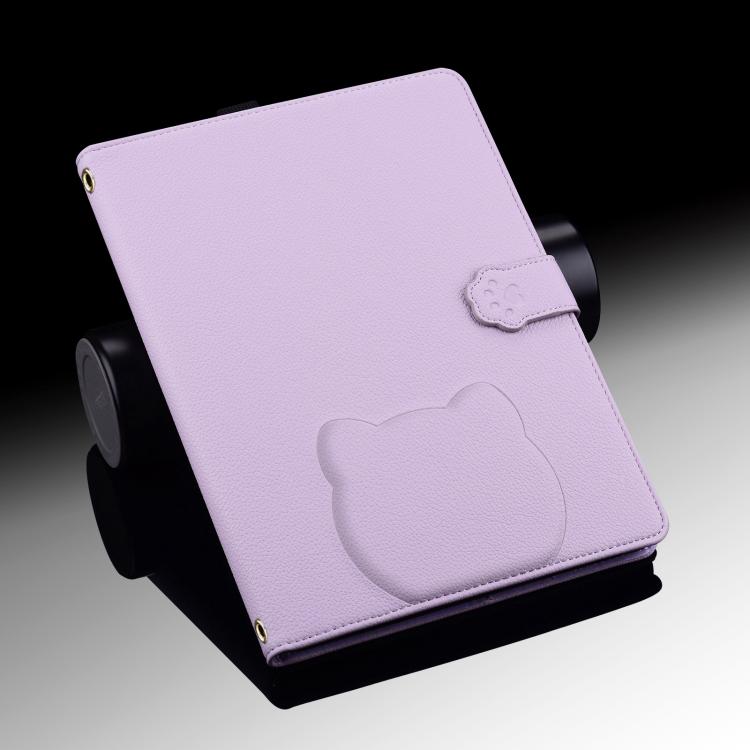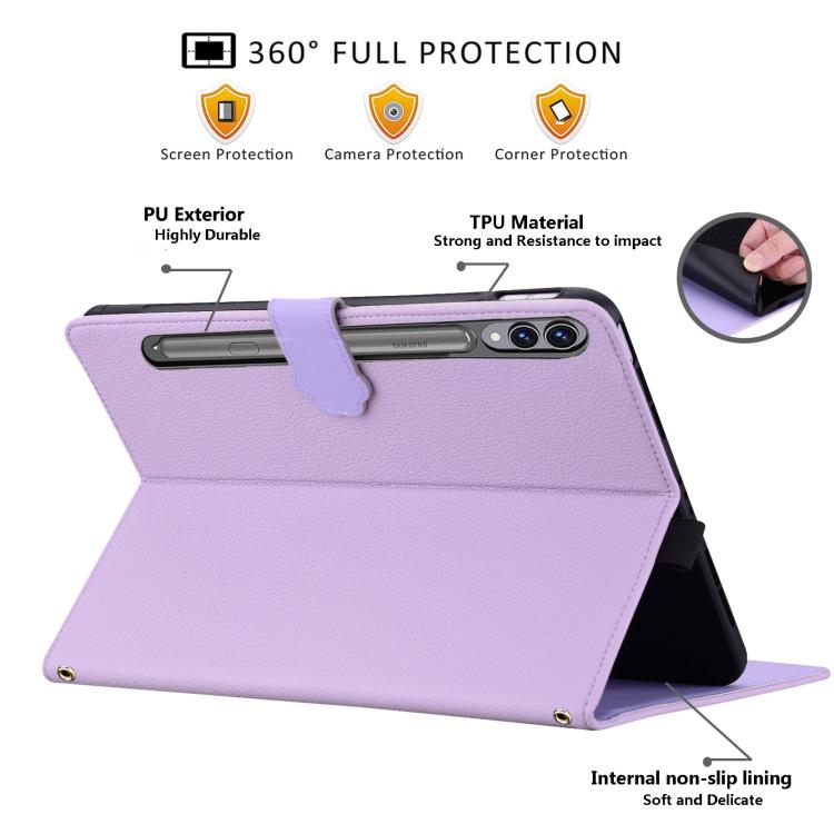 Funda de piel de lichi con tacto de gato para Samsung Galaxy Tab S10+/S9+ (morado)