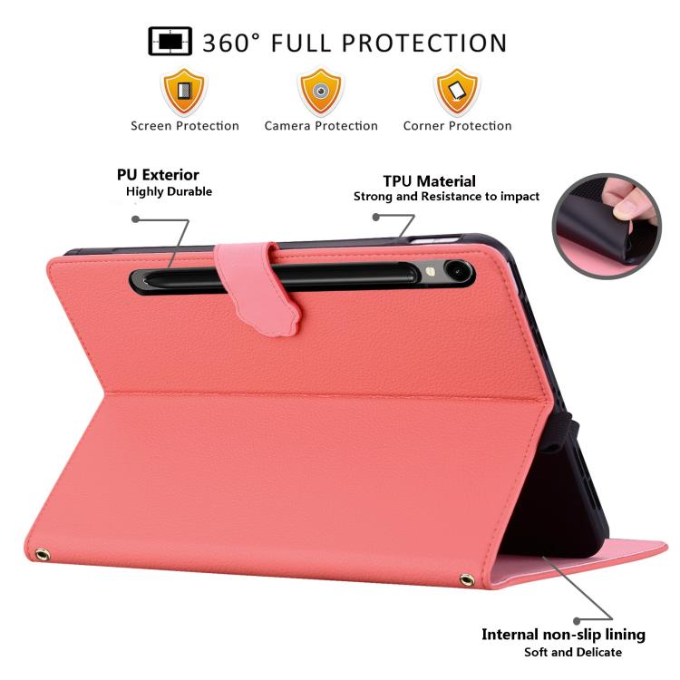 Funda de piel de lichi con tacto de gato para Samsung Galaxy Tab S10/S9/S9 FE (rojo sandía)