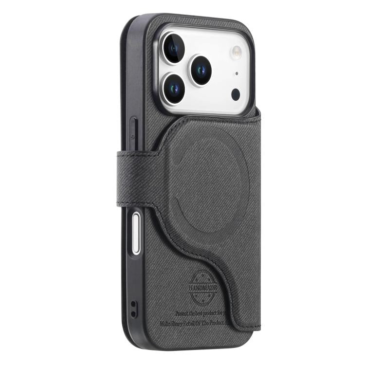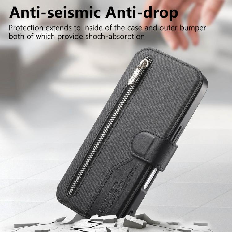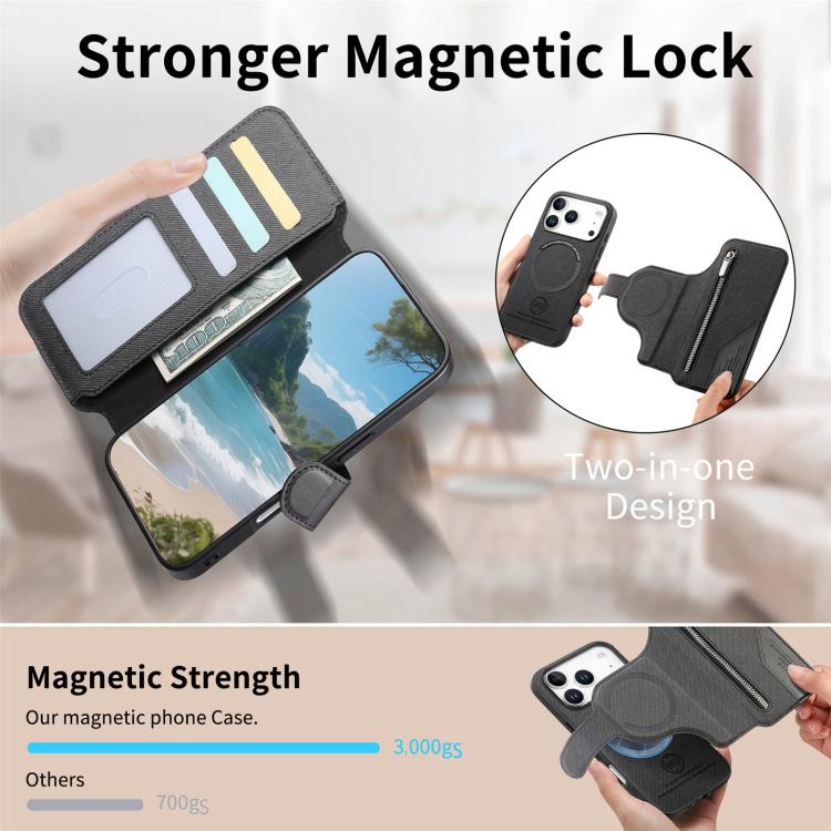 Funda de piel para iPhone 17 Pro, de tela de sarga, con MagSafe, RFID, antirrobo y cremallera (negra).