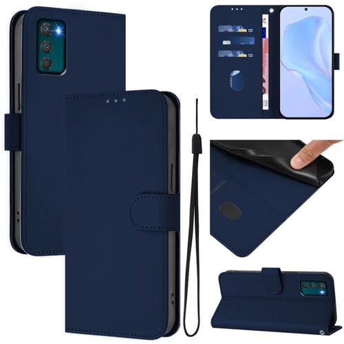 Funda de Piel Sintética con Cordón para Motorola Moto G42 4G (Azul Marino)