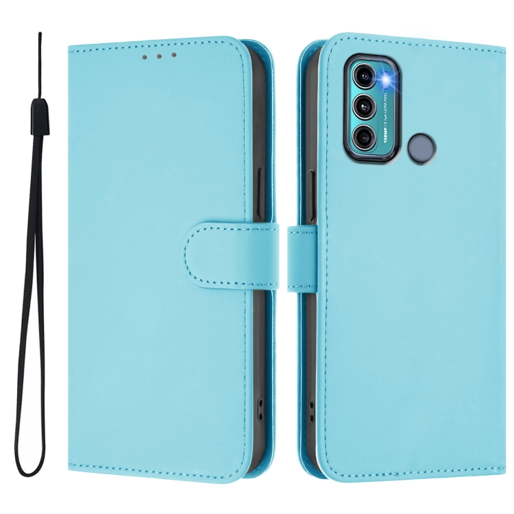 Funda de Piel Sintética con Cordón para Motorola Moto G60/G40 Fusion (Azul Cielo)