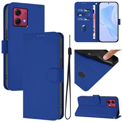 Funda de Piel Sintética con Cordón para Motorola Moto G84 5G (Azul Oscuro)