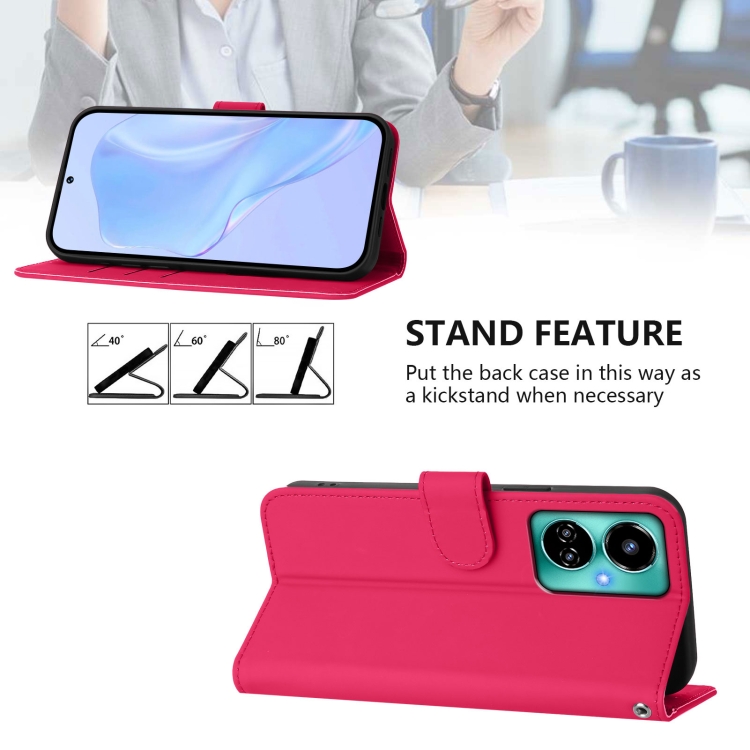 Funda de Piel para Tecno Camon 19/19 Pro 5G con Textura y Cordón (Rojo Rosa)