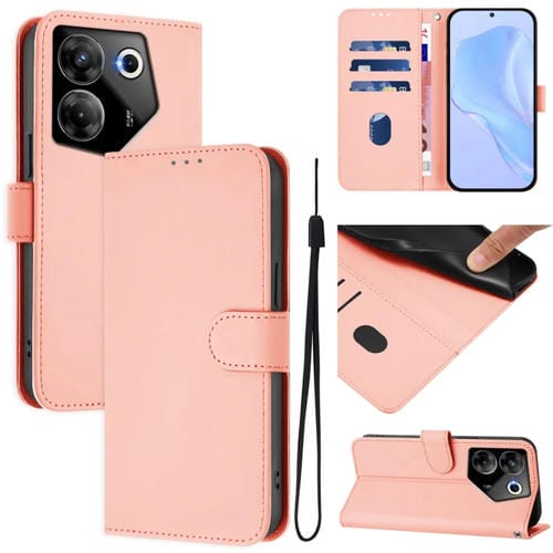 Funda de Piel Sintética con Cordón para Tecno Camon 20 Pro 5G (Rosa)