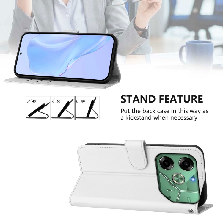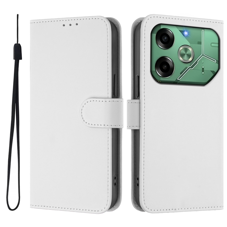 Funda de Piel Sintética con Cordón para Tecno Pova 6 4G (Blanco)