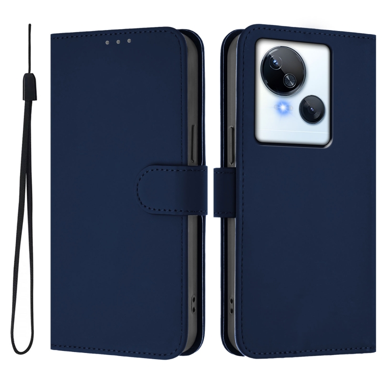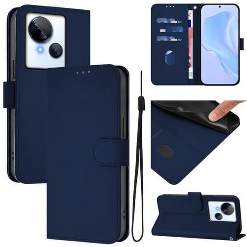 Funda de Piel con Textura y Cordón para Tecno Spark 10 5G (Azul Marino)