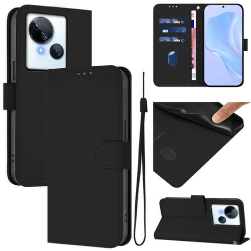 Funda de Piel para Tecno Spark 10 5G con Textura y Cordón (Negro)