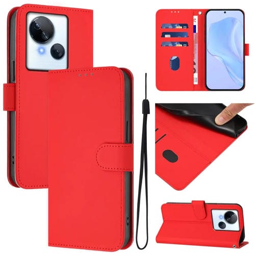 Funda de Piel Sintética con Cordón para Tecno Spark 10 5G (Rojo)