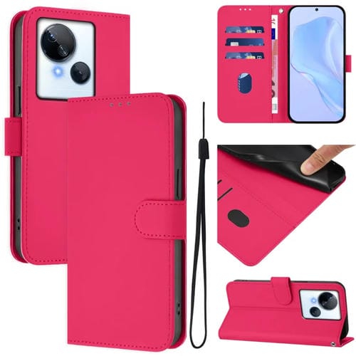 Funda de Piel para Tecno Spark 10 5G con Textura Lisa y Cordón (Rosa)