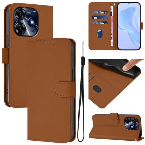 Funda de Cuero con Textura de Piel y Cordón para Tecno Spark 10 Pro 4G (Marrón)