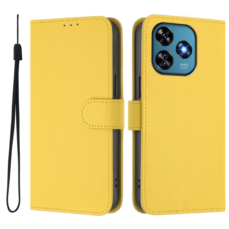Funda de Piel Sintética con Cordón para Teléfono Oukitel C51 (Amarillo Limón)