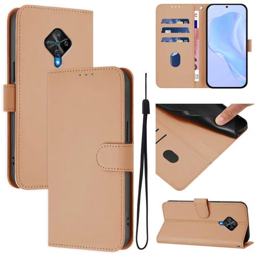 Funda de Piel Sintética con Cordón para Teléfono Vivo Y53S 4G/Y51A 2021 (Color Piel)