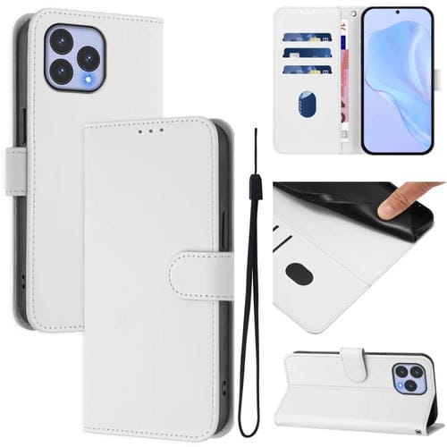 Funda de Piel Sintética con Cordón para Teléfono Wiko T60 y Cubot P80 (Blanco)