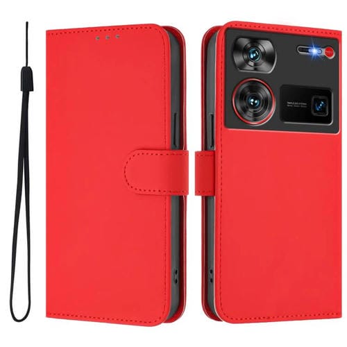 Funda de Piel Sintética con Cordón para Teléfono ZTE Nubia Z60 Ultra Skin Feel (Rojo)