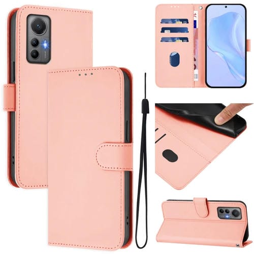 Funda de Piel Sintética con Cordón para Xiaomi 12 Lite, Color Liso, con Tacto de Piel (Rosa)