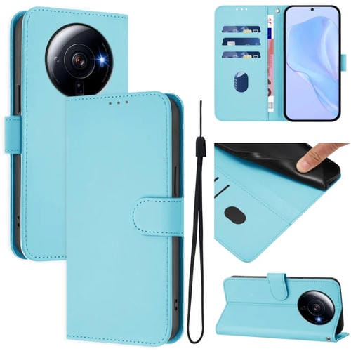 Funda de Piel Sintética con Cordón para Xiaomi 12S Ultra Skin Feel de Color Liso (Azul Cielo)