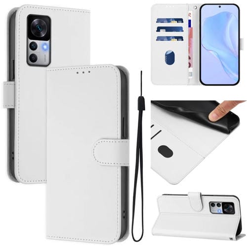 Funda de Piel Sintética con Cordón para Xiaomi 12T/12T Pro (Color Sólido) (Blanco)