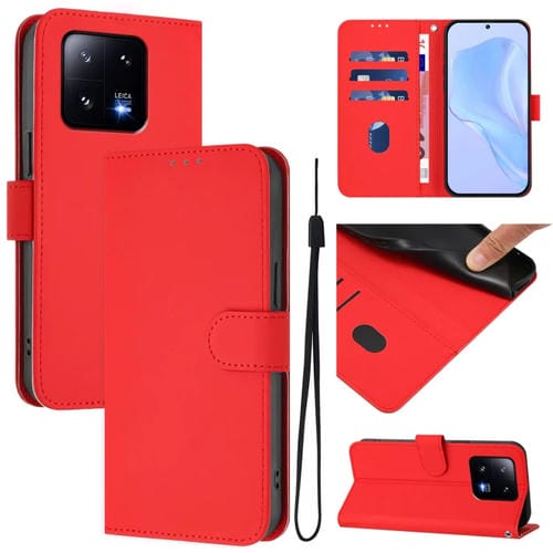 Funda de Piel Sintética con Cordón para Xiaomi 13 Pro 5G, Color Sólido, con Tacto de Piel (Rojo)
