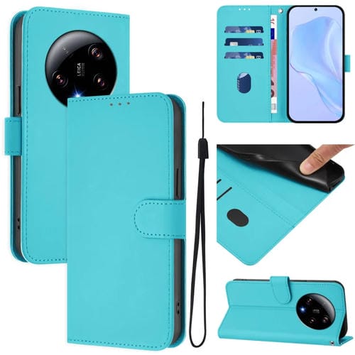 Funda de Piel Sintética con Cordón para Xiaomi 13 Ultra Skin Feel de Color Liso (Azul Lago)
