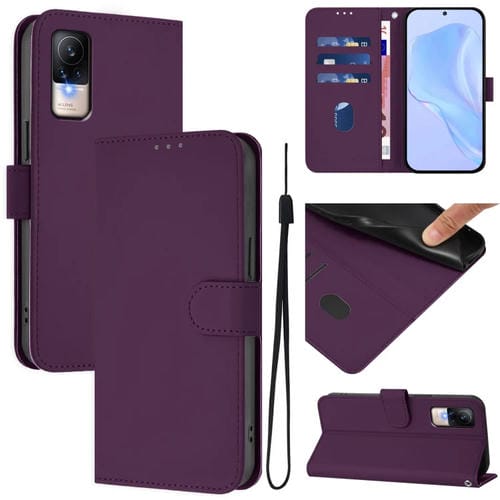 Funda de Piel Sintética con Cordón para Xiaomi Civi 1S (Color Sólido) (Violeta)
