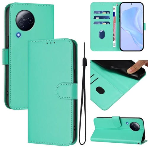 Funda de Piel Sintética con Cordón para Xiaomi Civi 3 5G, Color Liso, con Tacto de Piel (Verde)