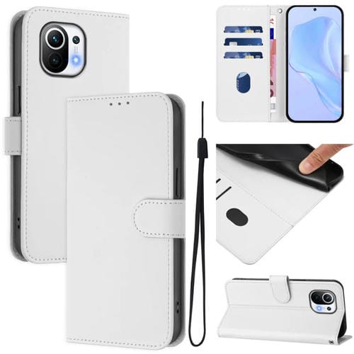 Funda de Piel Sintética con Cordón para Xiaomi Mi 11 (Color Blanco)